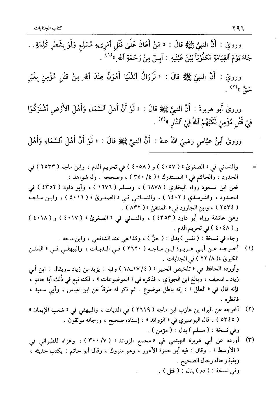 وروي: أن النبي - صَلَّى اللَّهُ عَلَيْهِ وَسَلَّمَ - قال: «لزوال الدنيا أهون عند الله من قتل مؤمن بغير حق» .