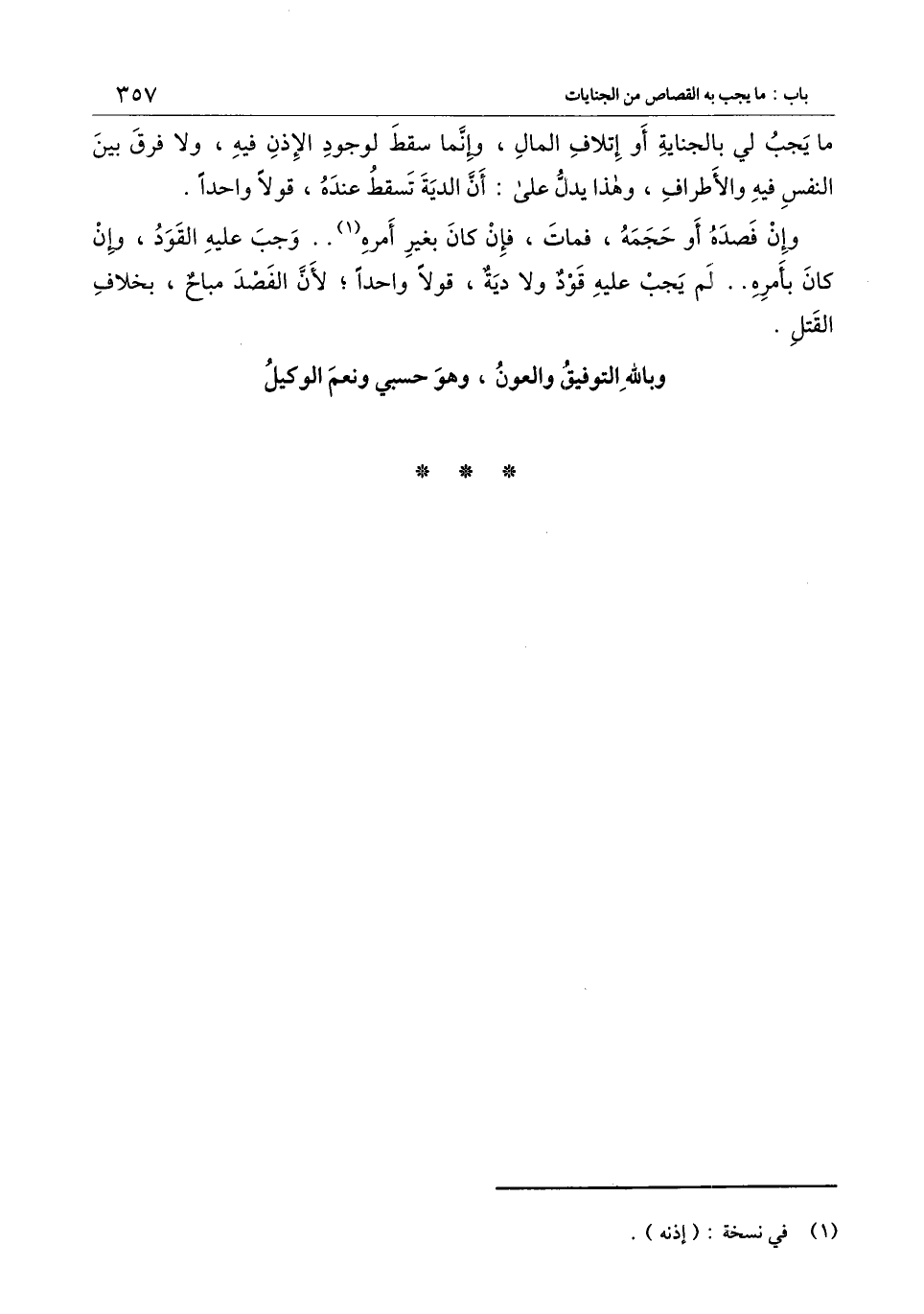 ما يجب لي بالجناية أو إتلاف المال، وإنما سقط لوجود الإذن فيه، ولا فرق بين النفس فيه والأطراف، وهذا يدل على: أن الدية تسقط عنده، قولاً واحداً.