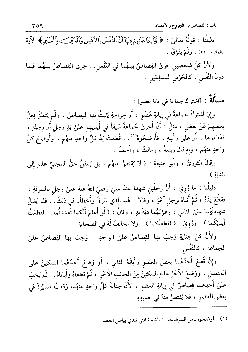 ولأن كل شخصين جرى القصاص بينهما في النفس.. جرى القصاص بينهما فيما دون النفس، كالحرين المسلمين.