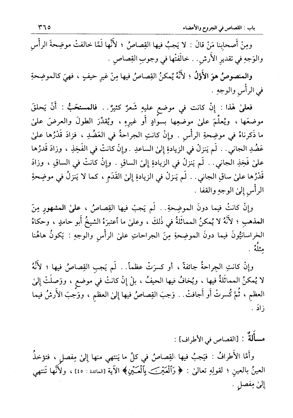 [مسألة القصاص في الأطراف]
