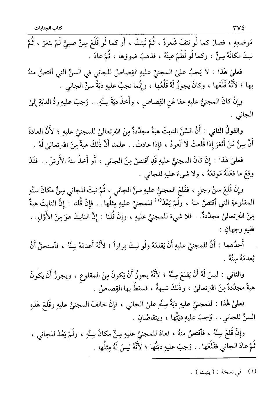 والقول الثاني: أن السن النابت هبة مجددة من الله تعالى للمجني عليه؛ لأن العادة أن سن من أثغر إذا قلعت لا تعود، فإذا عادت.. علمنا أن ذلك هبة من الله تعالى له.