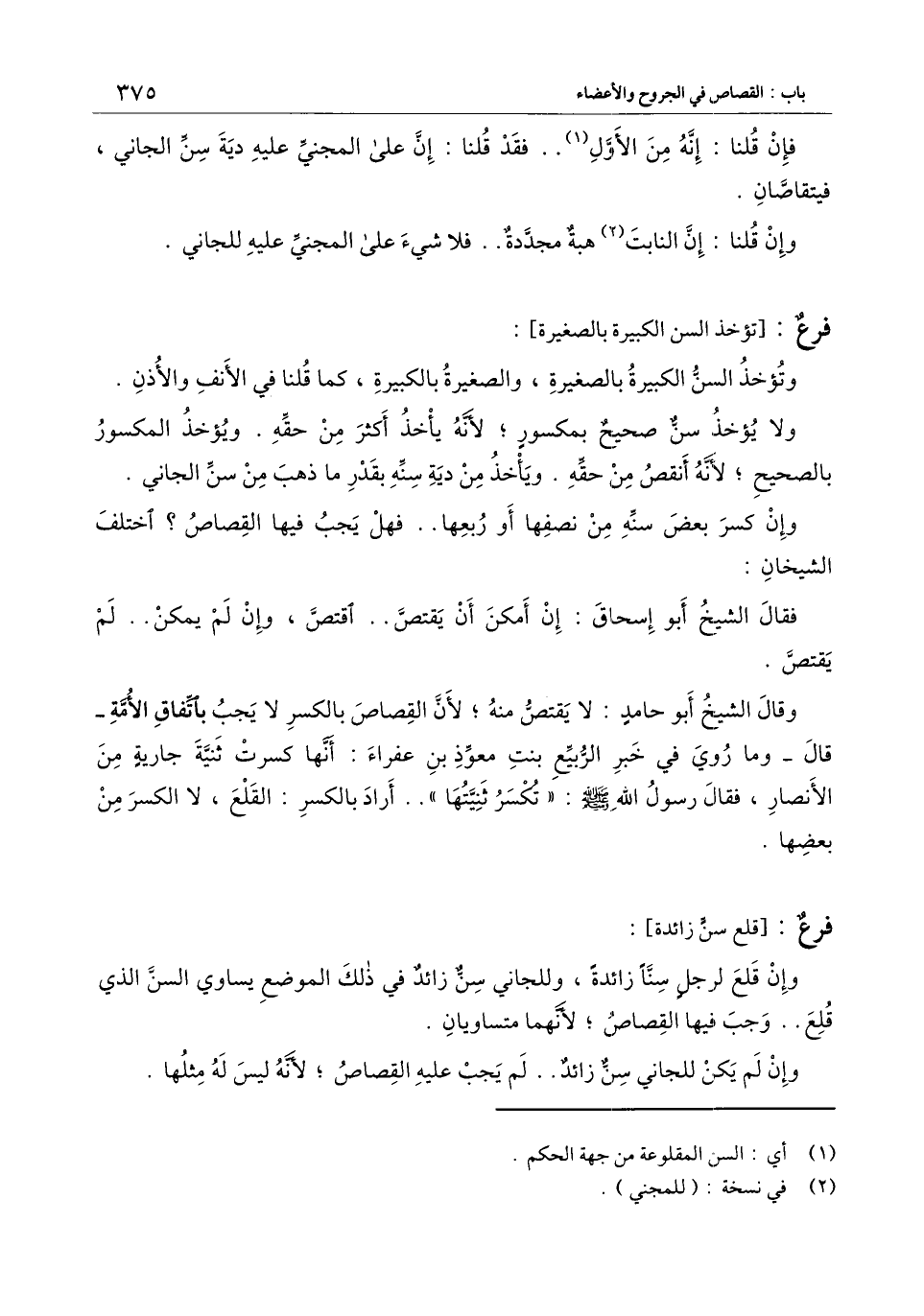 وإن كسر بعض سنه من نصفها أو ربعها.. فهل يجب فيها القصاص؟ اختلف الشيخان: