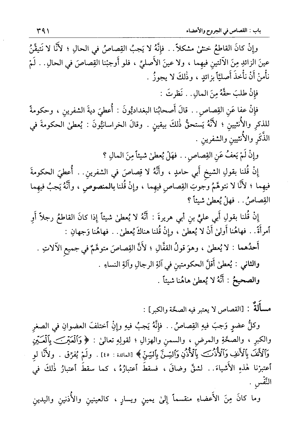 مسألة: [القصاص لا يعتبر فيه الصحة والكبر] :
