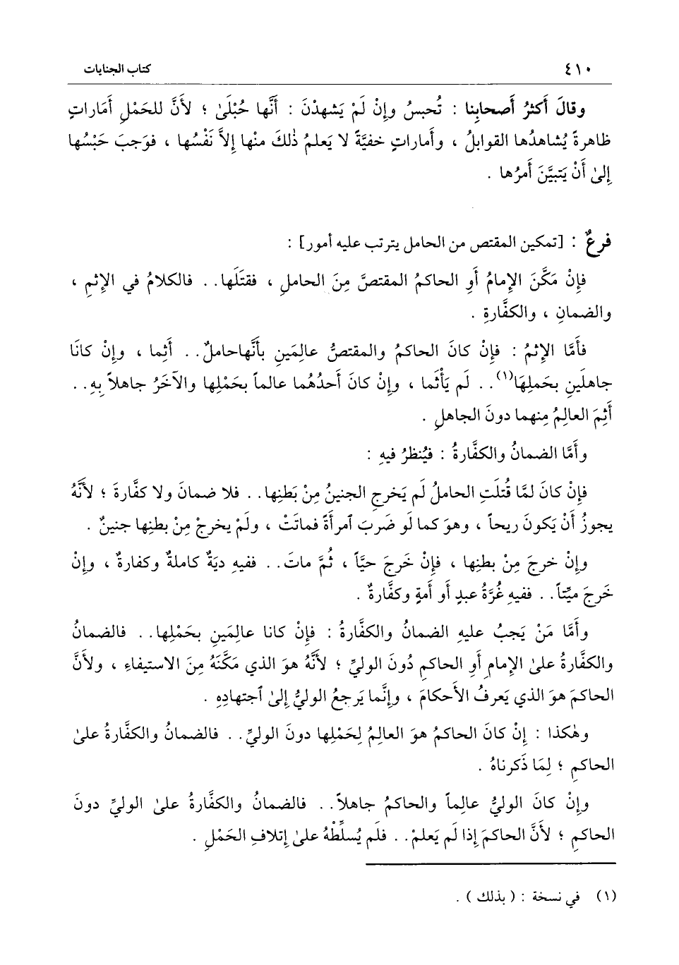 [فرع تمكين المقتص من الحامل يترتب عليه أمور]