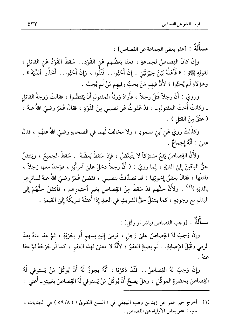 [مسألة عفو بعض الجماعة عن القصاص]