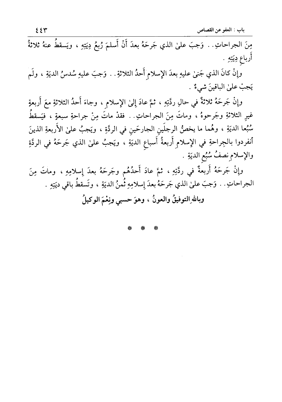 من الجراحات.. وجب على الذي جرحه بعد أن أسلم ربع ديته، ويسقط عنه ثلاثة أرباع ديته.