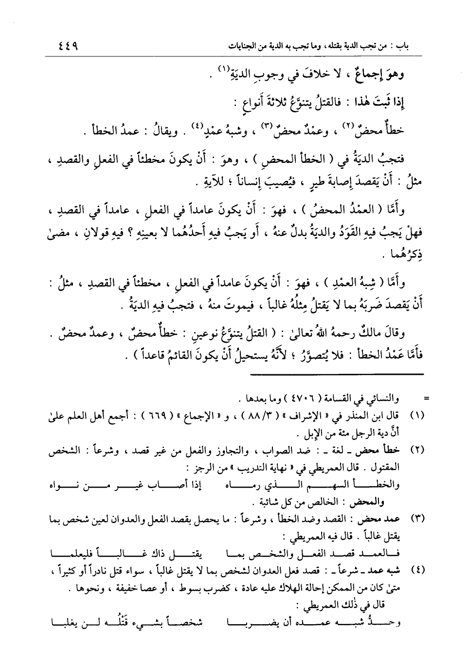 خطأ محض، وعمد محض، وشبه عمد. ويقال: عمد الخطأ.
