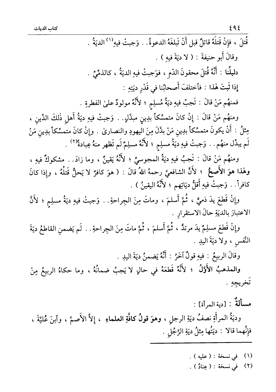 [مسألة دية المرأة]