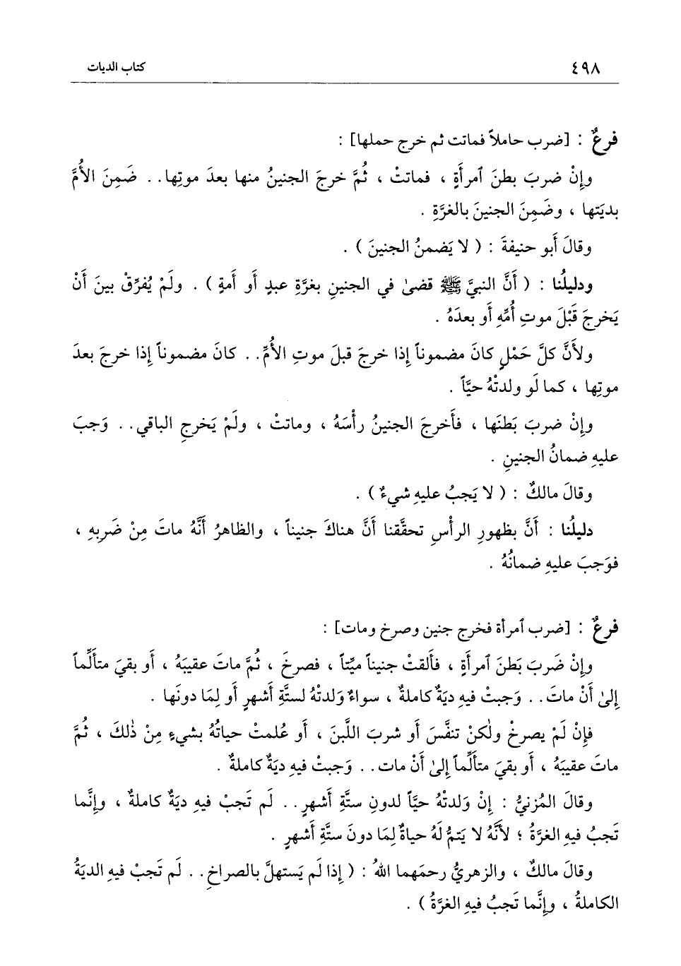 وقال مالك، والزهري رحمهما الله: (إذا لم يستهل بالصراخ.. لم تجب فيه الدية الكاملة، وإنما تجب فيه الغرة) .