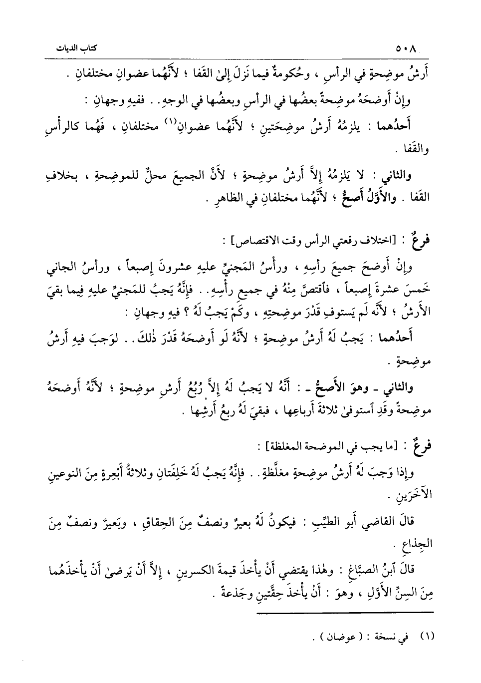 والثاني: لا يلزمه إلا أرش موضحة؛ لأن الجميع محل للموضحة، بخلاف القفا. والأول أصح؛ لأنهما مختلفان في الظاهر.