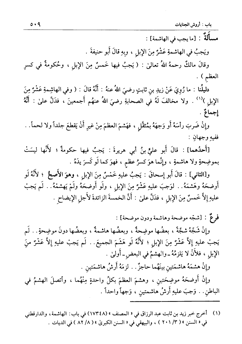 دليلنا: ما روي عن زيد بن ثابت - رَضِيَ اللَّهُ عَنْهُ -: أنه قال: (وفي الهاشمة عشر من الإبل) . ولا مخالف له في الصحابة - رَضِيَ اللَّهُ عَنْهُمْ أَجْمَعِينَ -، فدل على: أنه إجماع.