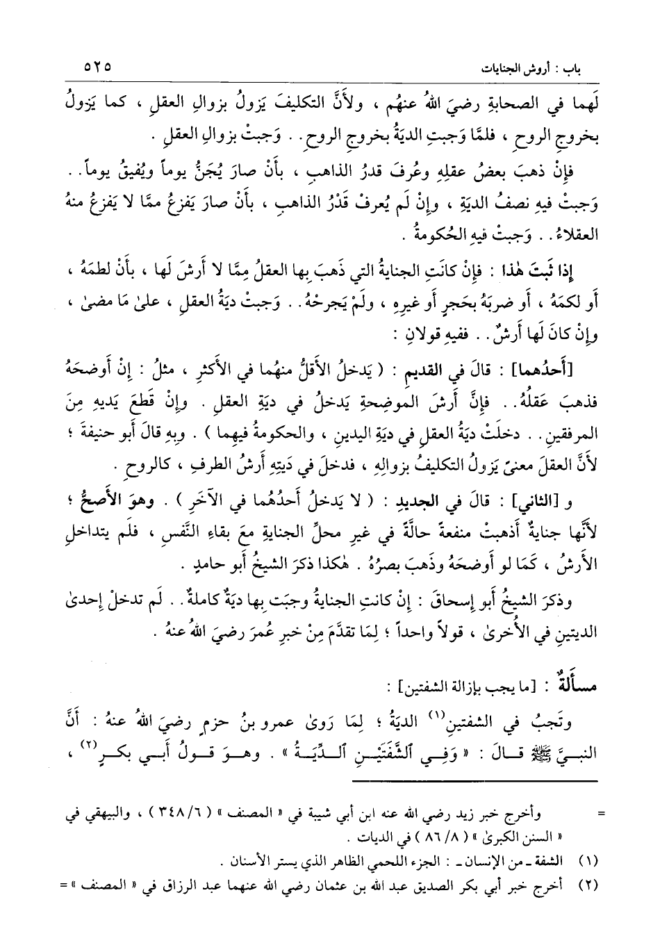 لهما في الصحابة - رَضِيَ اللَّهُ عَنْهُمْ -، ولأن التكليف يزول بزوال العقل، كما يزول بخروج الروح، فلما وجبت الدية بخروج الروح.. وجبت بزوال العقل.