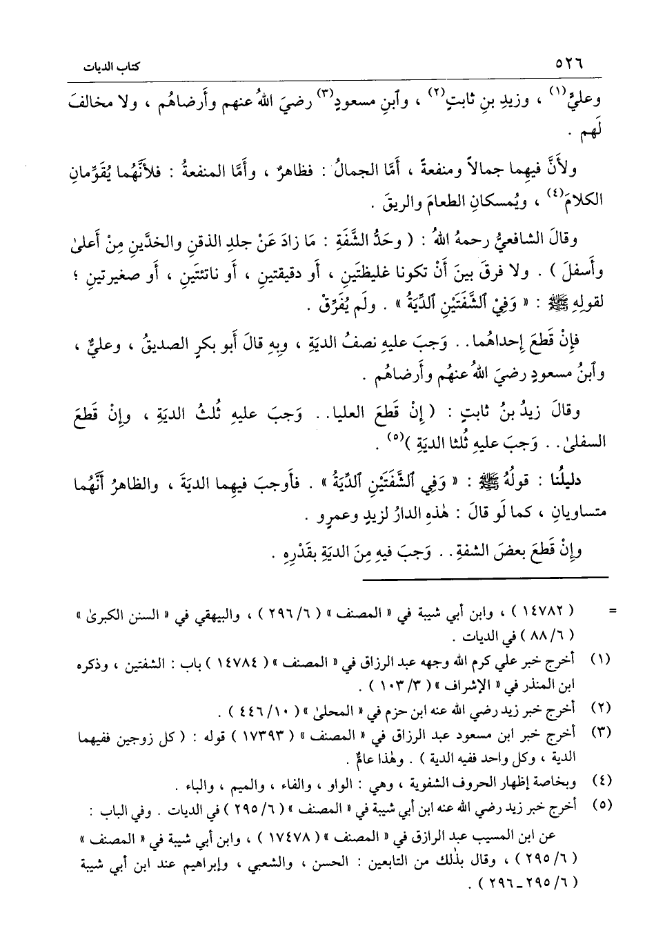 وقال زيد بن ثابت: (إن قطع العليا.. وجب عليه ثلث الدية، وإن قطع السفلى.. وجب عليه ثلثا الدية) .