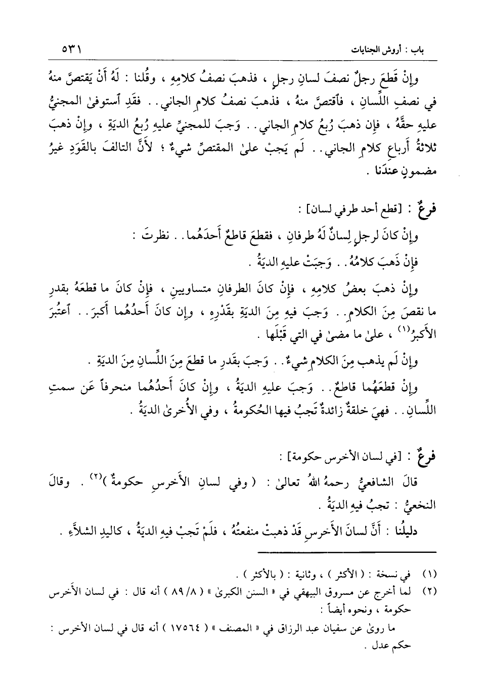 ] : وإن كان لرجل لسان له طرفان، فقطع قاطع أحدهما.. نظرت: