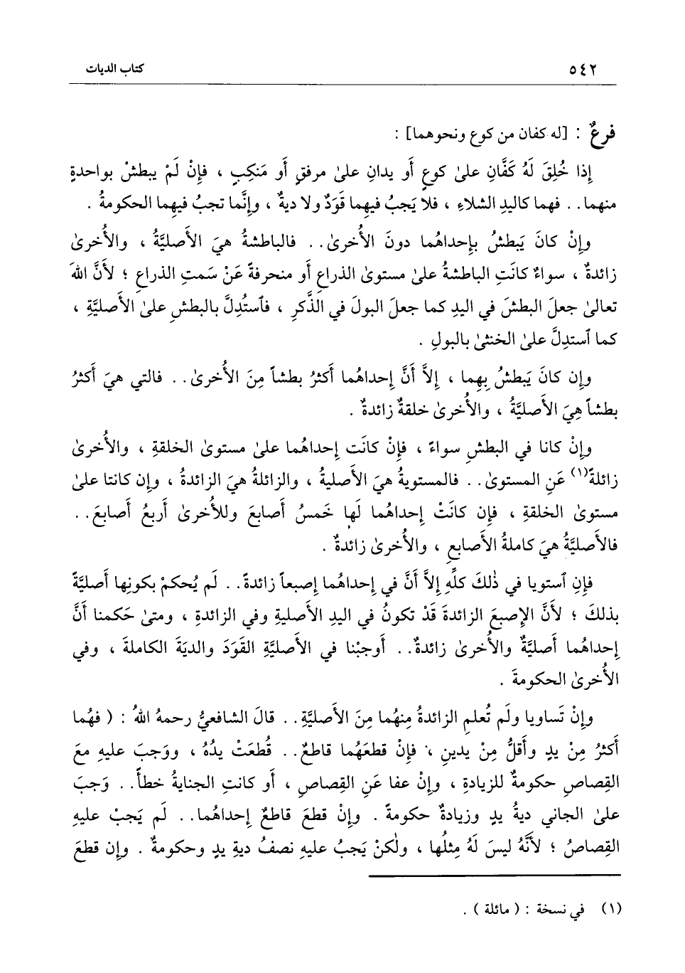 فإن استويا في ذلك كله إلا أن في إحداهما إصبعًا زائدة.. لم يحكم بكونها أصلية بذلك؛ لأن الإصبع الزائدة قد تكون في اليد الأصلية وفي الزائدة، ومتى حكمنا أن إحداهما أصلية والأخرى زائدة.. أوجبنا في الأصلية القود والدية الكاملة، وفي الأخرى الحكومة.