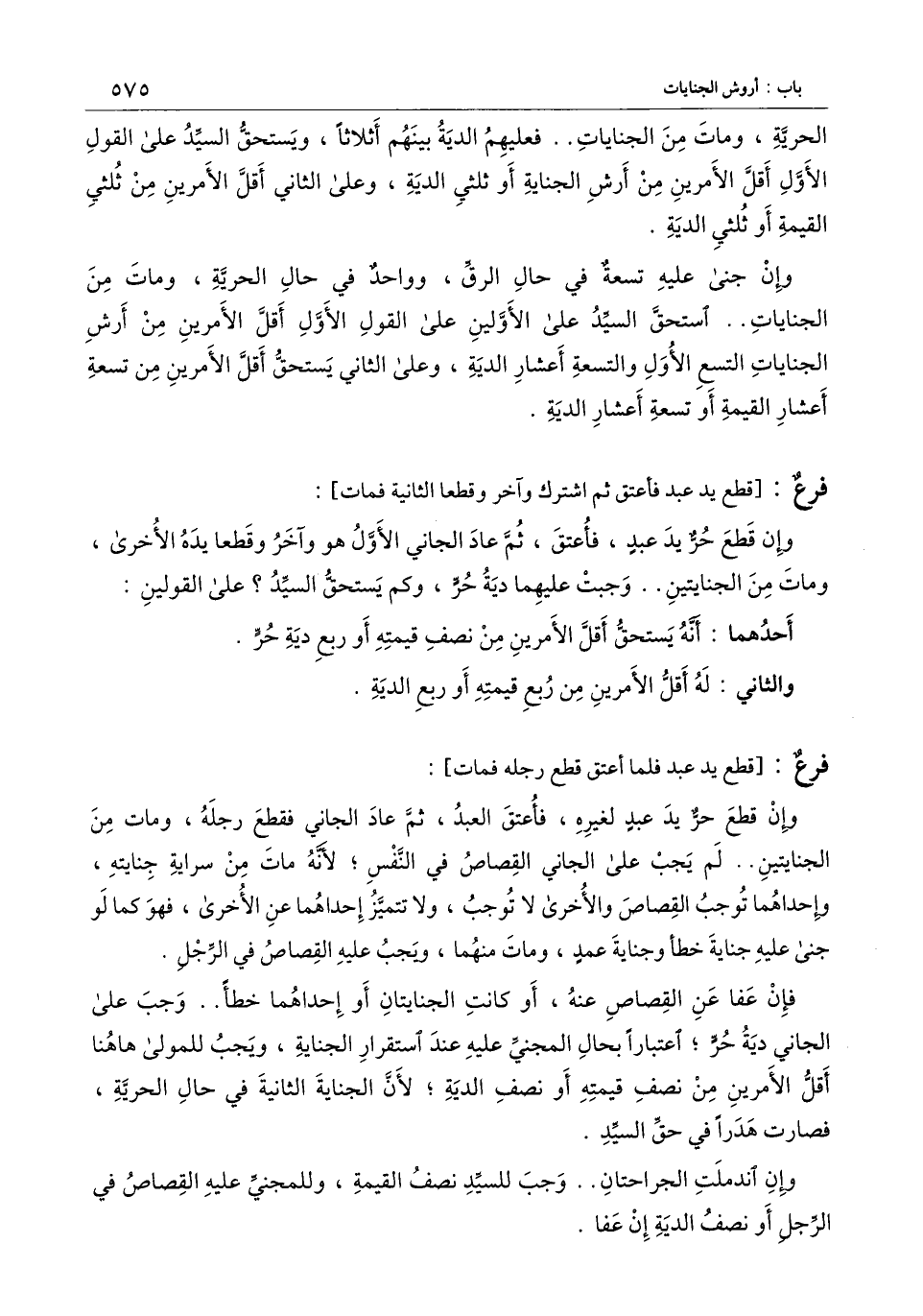 [فرع قطع يد عبد فلما أعتق قطع رجله فمات]