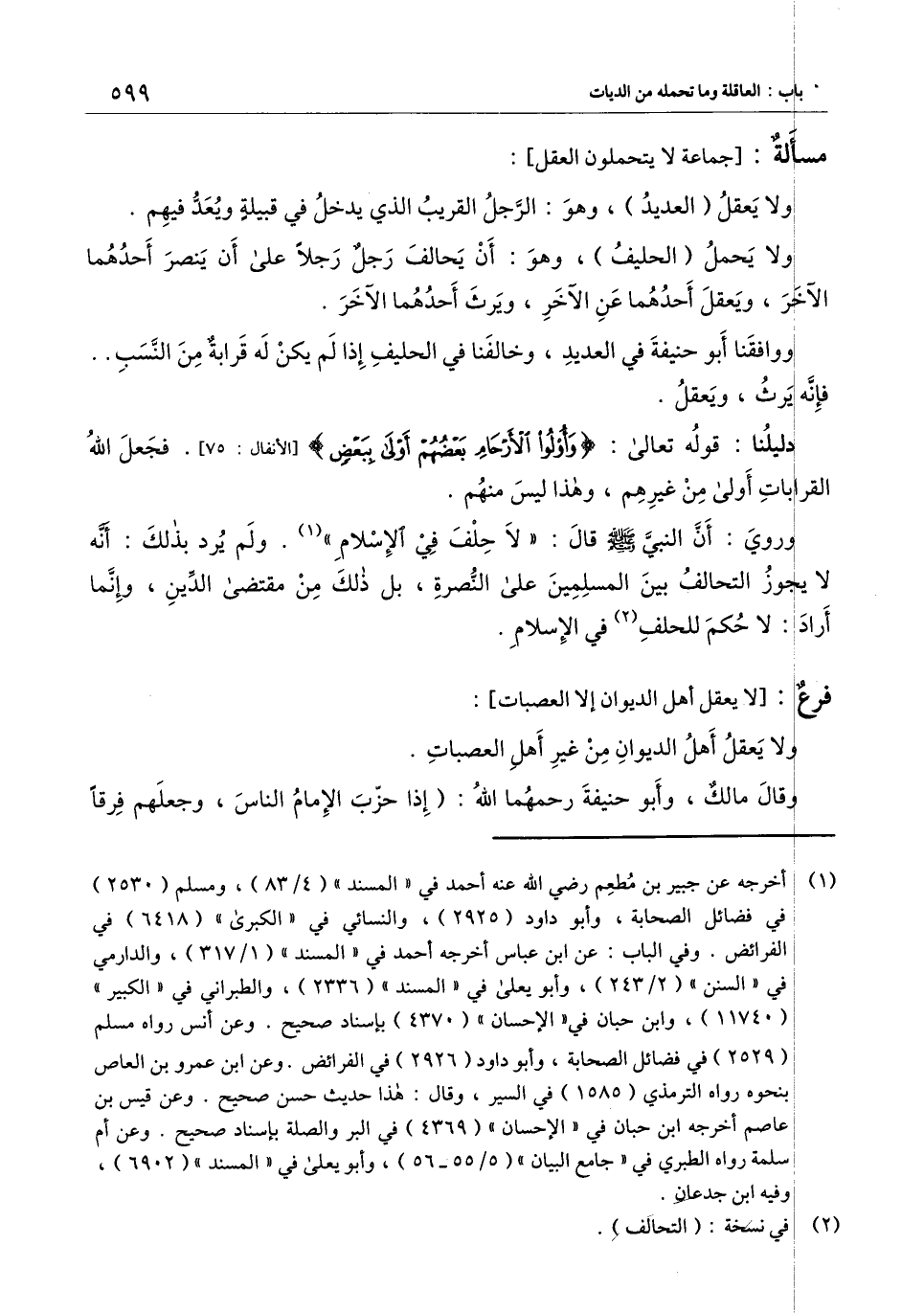 ووافقنا أبو حنيفة في العديد، وخالفنا في الحليف إذا لم يكن له قرابة من النسب.. فإنه يرث، ويعقل.