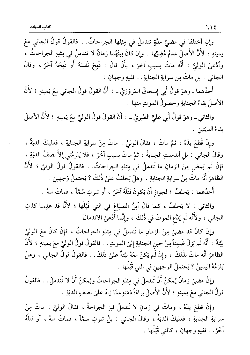 وإن قطع يده، ثم مات، فقال الولي: مات من سراية الجناية، فعليك الدية، وقال الجاني: بل اندملت الجناية، ثم مات بسبب آخر، فلا يلزمني إلا نصف الدية، فإن لم يمض من الزمان ما تندمل في مثله الجراحات.. فالقول قول الولي؛ لأن الظاهر أنه مات من سراية الجناية، وهل يحلف على ذلك؟ يحتمل وجهين: