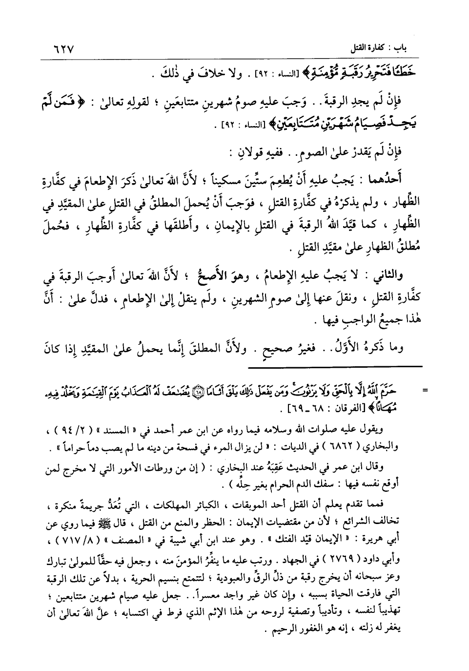 فإن لم يجد الرقبة.. وجب عليه صوم شهرين متتابعين؛ لِقَوْلِهِ تَعَالَى: {فَمَنْ لَمْ يَجِدْ فَصِيَامُ شَهْرَيْنِ مُتَتَابِعَيْنِ} [النساء: 92] [النساء: 92] .