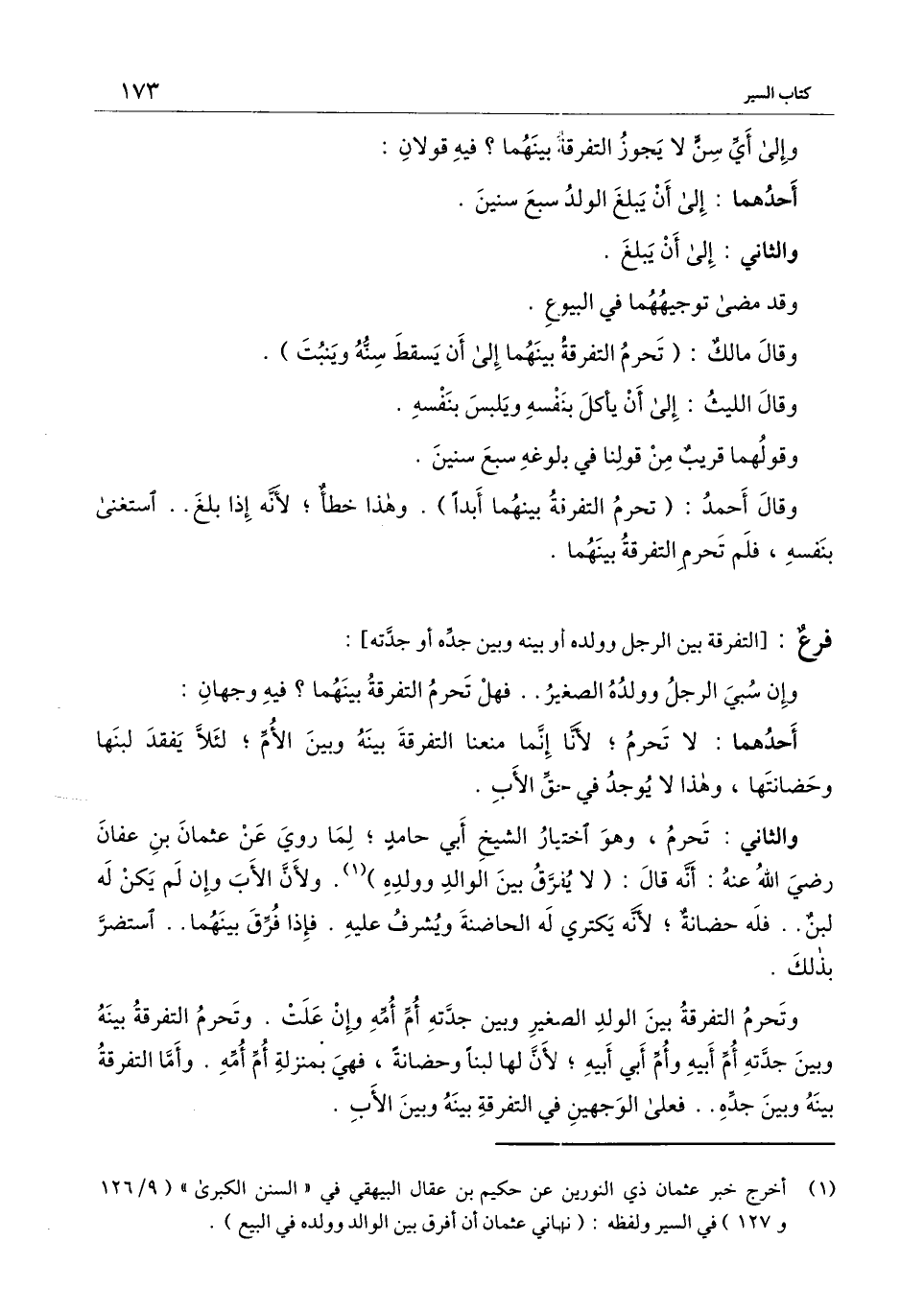 ] : وإن سبي الرجل وولده الصغير.. فهل تحرم التفرقة بينهما؟ فيه وجهان: