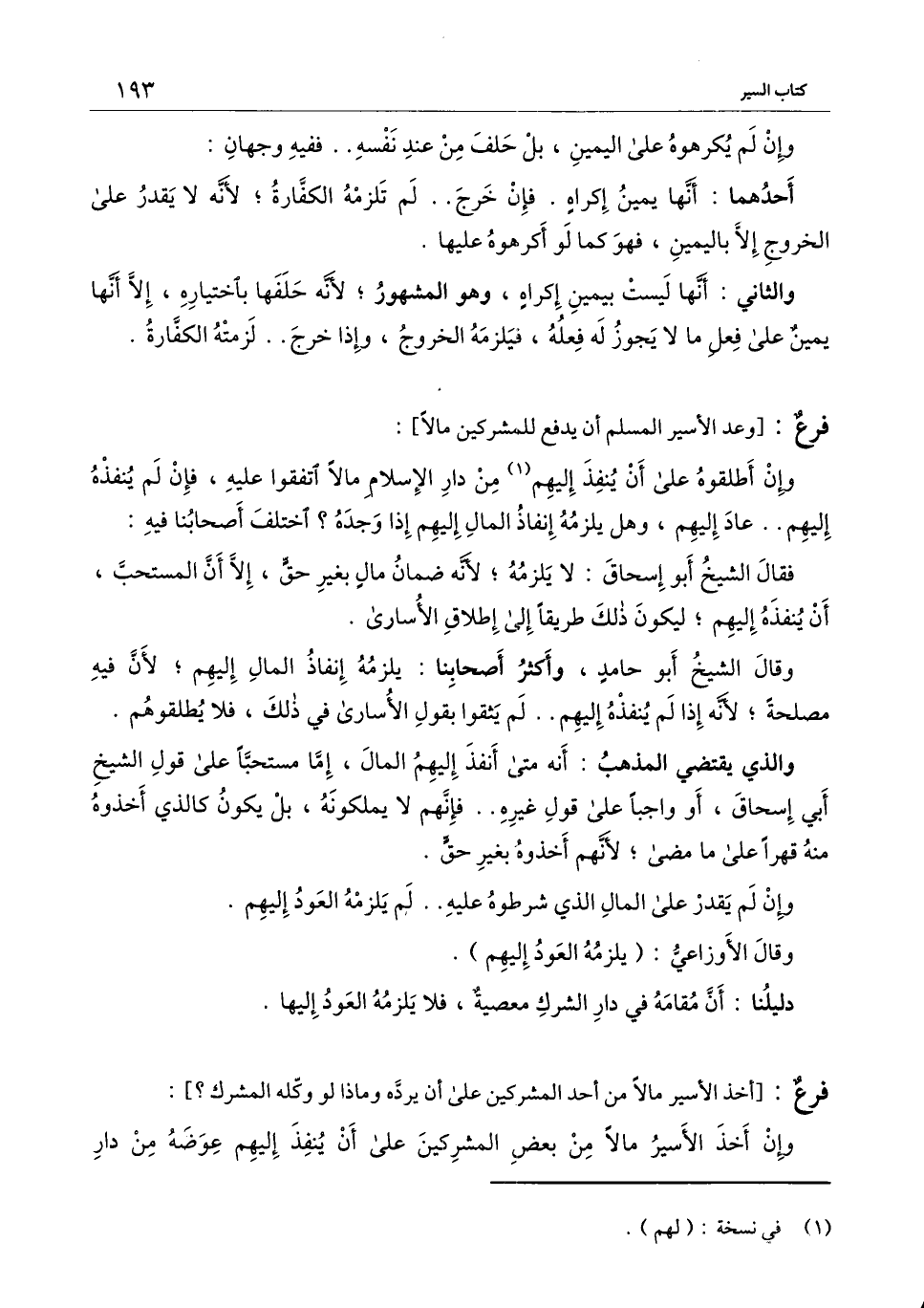 ] : وإن أخذ الأسير مالا من بعض المشركين على أن ينفذ إليهم عوضه من دار