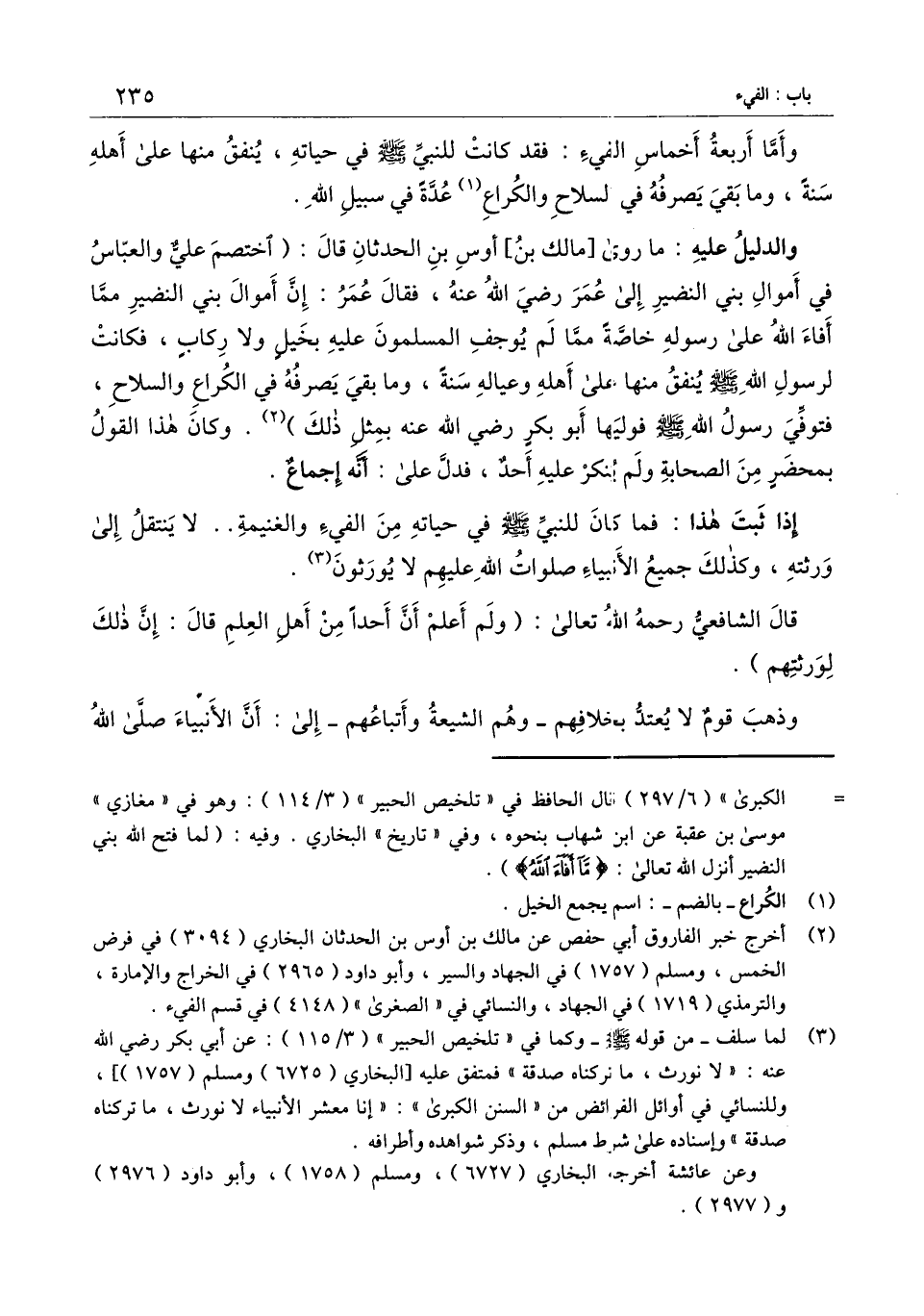 إذا ثبت هذا: فما كان للنبي - صَلَّى اللَّهُ عَلَيْهِ وَسَلَّمَ -، في حياته من الفيء والغنيمة.. لا ينتقل إلى ورثته، وكذلك جميع الأنبياء - صَلَوَاتُ اللَّهِ عَلَيْهِمْ - لا يورثون.