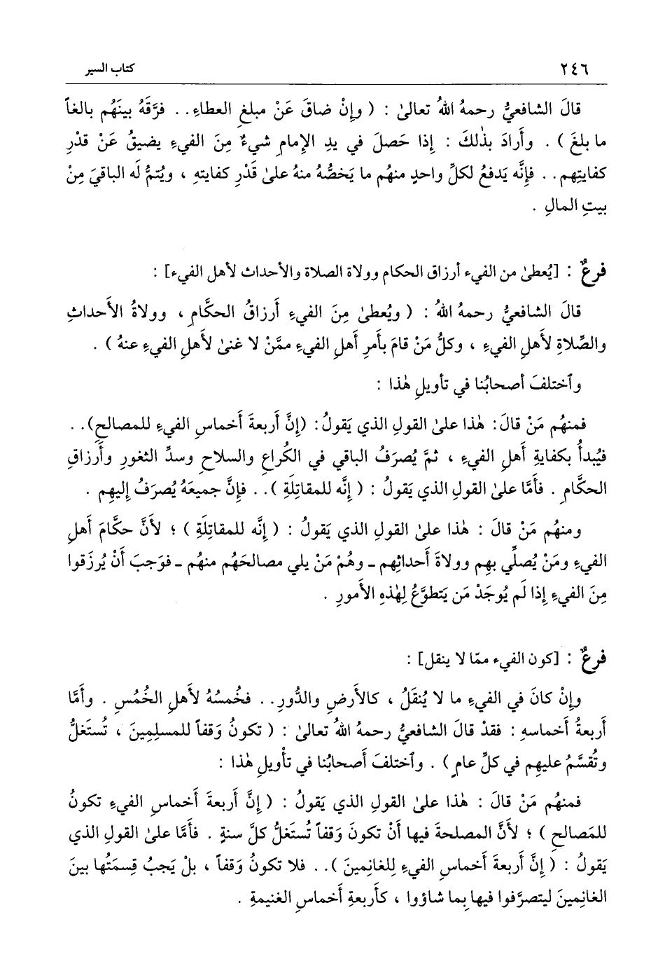 فمنهم من قال: هذا على القول الذي يقول: (إن أربعة أخماس الفيء تكون للمصالح) ؛ لأن المصلحة فيها أن تكون وقفا ًتستغل كل سنة. فأما على القول الذي يقول: (إن أربعة أخماس الفيء للغانمين) .. فلا تكون وقفًا، بل يجب قسمتها بين الغانمين ليتصرفوا فيها بما شاءوا، كأربعة أخماس الغنيمة.