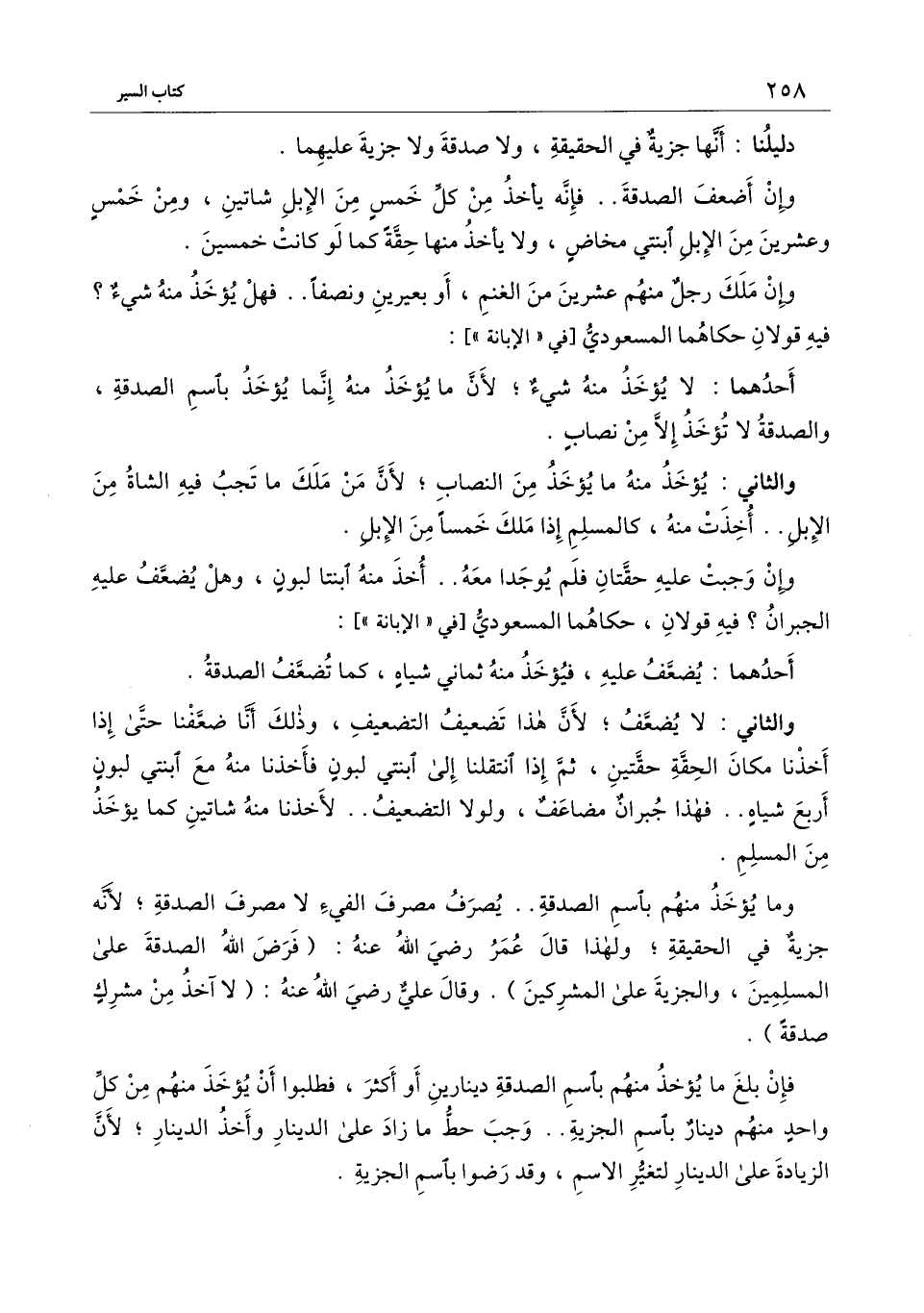 والثاني: لا يضعف؛ لأن هذا تضعيف التضعيف، وذلك أنا ضعفنا حتى إذا أخذنا مكان الحقة حقتين، ثم إذا انتقلنا إلى ابنتي لبون فأخذنا منه مع ابنتي لبون أربع شياه.. فهذا جبران مضاعف، ولولا التضعيف.. لأخذنا منه شاتين كما يؤخذ من المسلم.