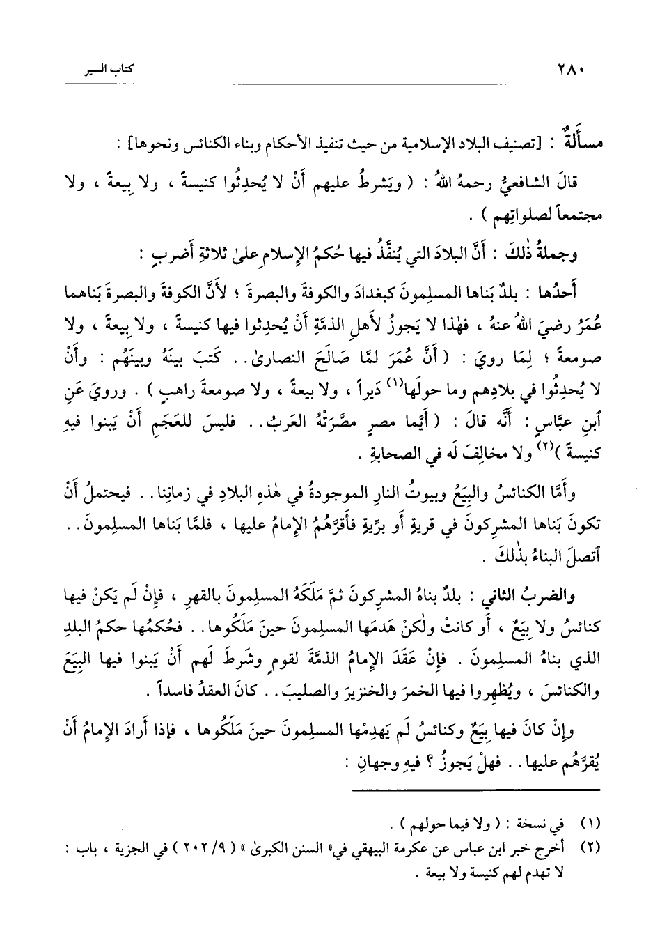 [مسألة: تصنيف البلاد الإسلامية من حيث تنفيذ الأحكام وبناء الكنائس ونحوها]