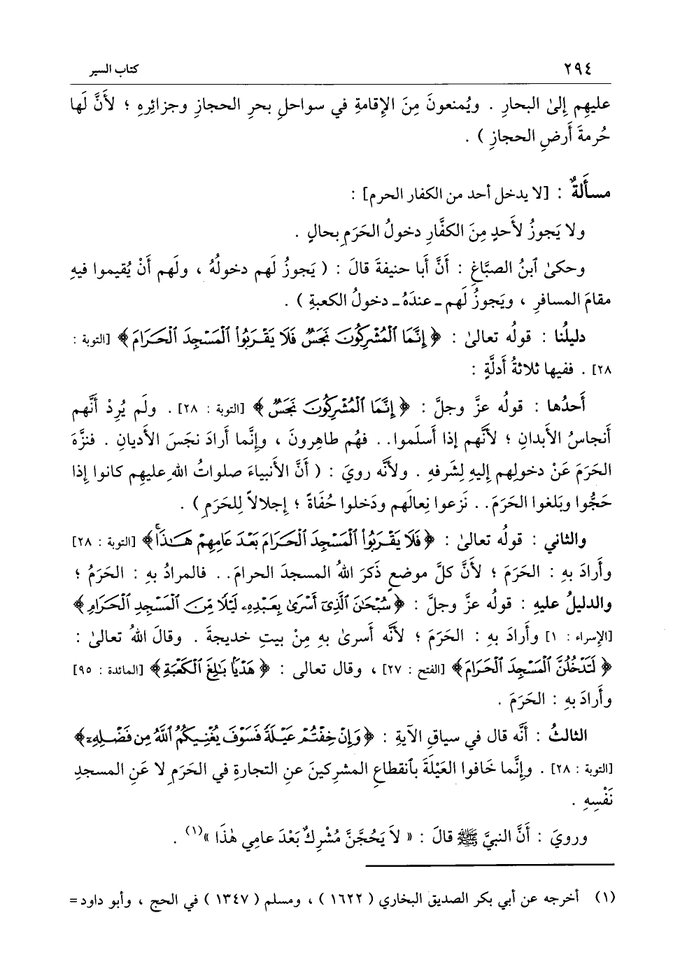 ولا يجوز لأحد من الكفار دخول الحرم بحال.