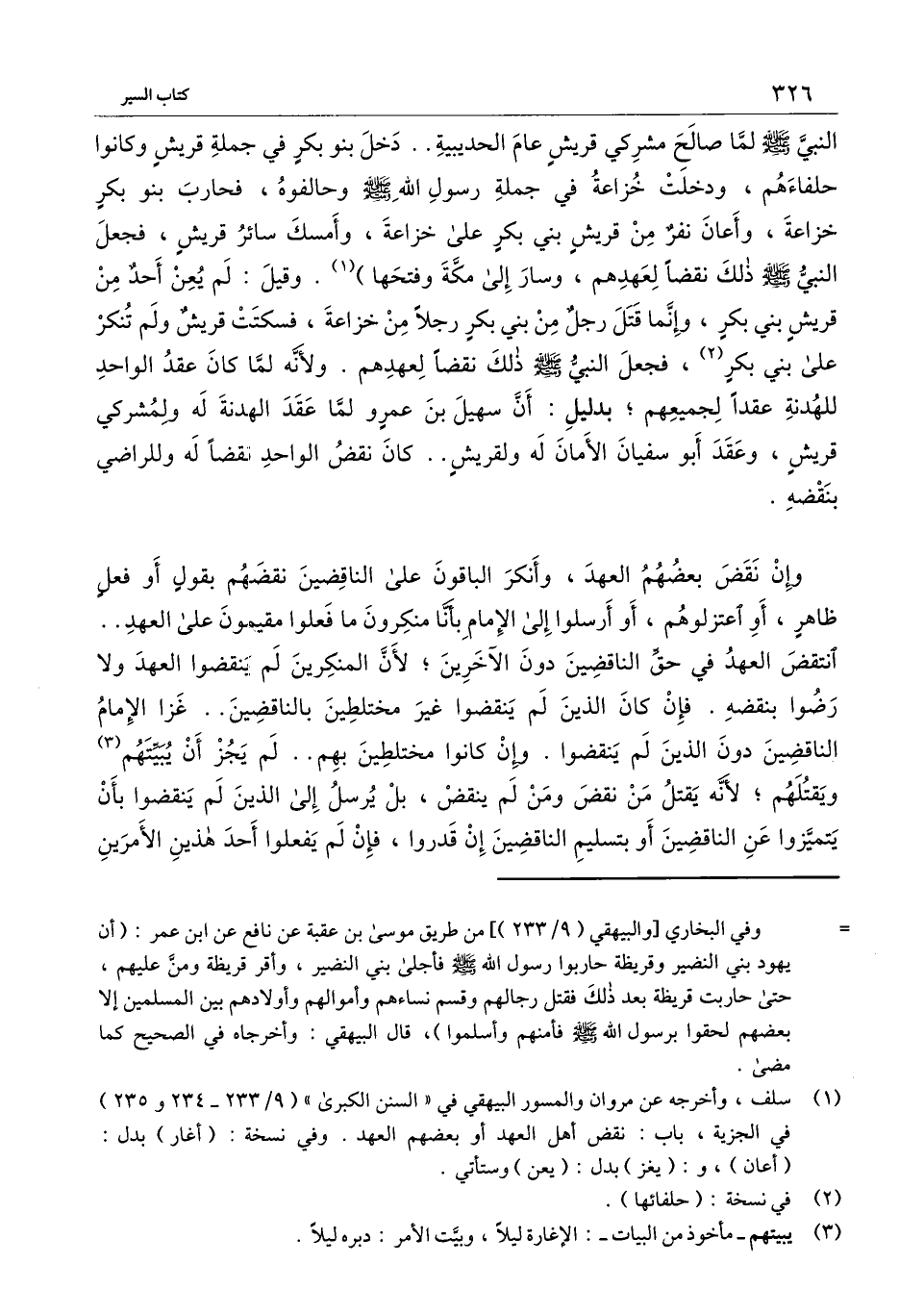 النَّبيّ - صَلَّى اللَّهُ عَلَيْهِ وَسَلَّمَ - لما صالح مشركي قريش عام الحديبية.. دخل بَنُو بكر في جملة قريش وكانوا حلفاءهم، ودخلت خزاعة في جملة رسول الله - صَلَّى اللَّهُ عَلَيْهِ وَسَلَّمَ - وحالفوه، فحارب بَنُو بكر خزاعة، وأعان نفر من قريش بني بكر على خزاعة، وأمسك سائر قريش، فجعل النَّبيّ - صَلَّى اللَّهُ عَلَيْهِ وَسَلَّمَ - ذلك نقضا لعهدهم، وسار إلى مكة وفتحها) . وقيل: لم يعن أحد من قريش بني بكر، وإنما قتل رجل من بني بكر رجلا من خزاعة، فسكتت قريش ولم تنكر على بني بكر، فجعل النَّبيّ - صَلَّى اللَّهُ عَلَيْهِ وَسَلَّمَ - ذلك نقضا لعهدهم. ولأنه لما كان عقد الواحد للهدنة عقدا لجميعهم؛ بدليل: أن سهيل بن عمرو لما عقد الهدنة له ولمشركي قريش، وعقد أبُو سفيان الأمان له ولقريش.. كان نقض الواحد نقضا له وللراضي بنقضه.