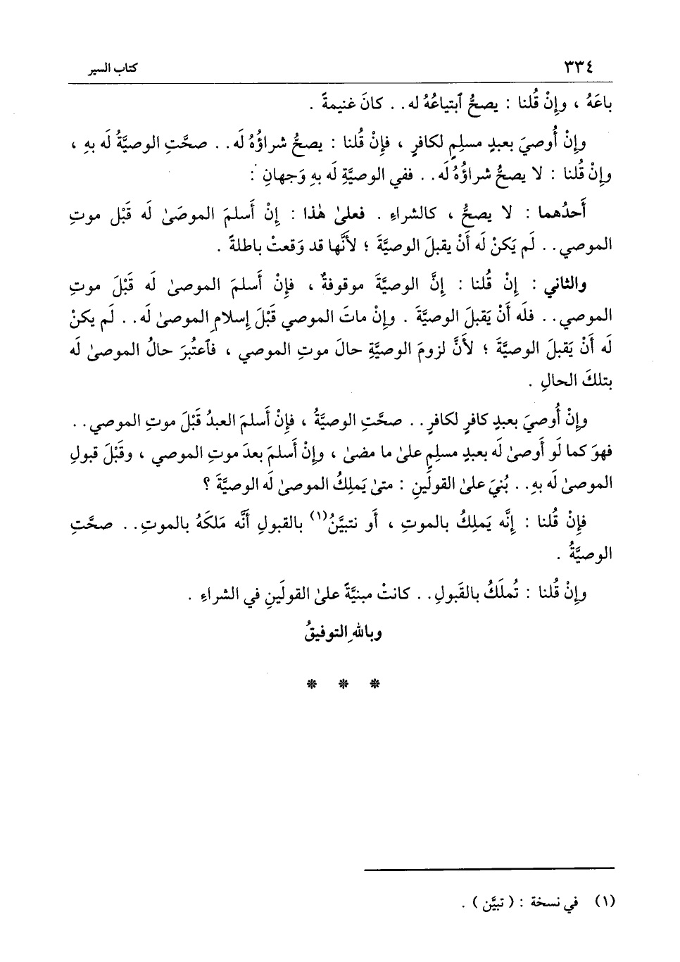 والثاني: إن قلنا: إن الوصية موقوفة، فإن أسلم الموصى له قبل موت الموصي.. فله أن يقبل الوصية. وإن مات الموصي قبل إسلام الموصى له.. لم يكن له أن يقبل الوصية؛ لأن لزوم الوصية حال موت الموصي، فاعتبر حال الموصى له بتلك الحال.