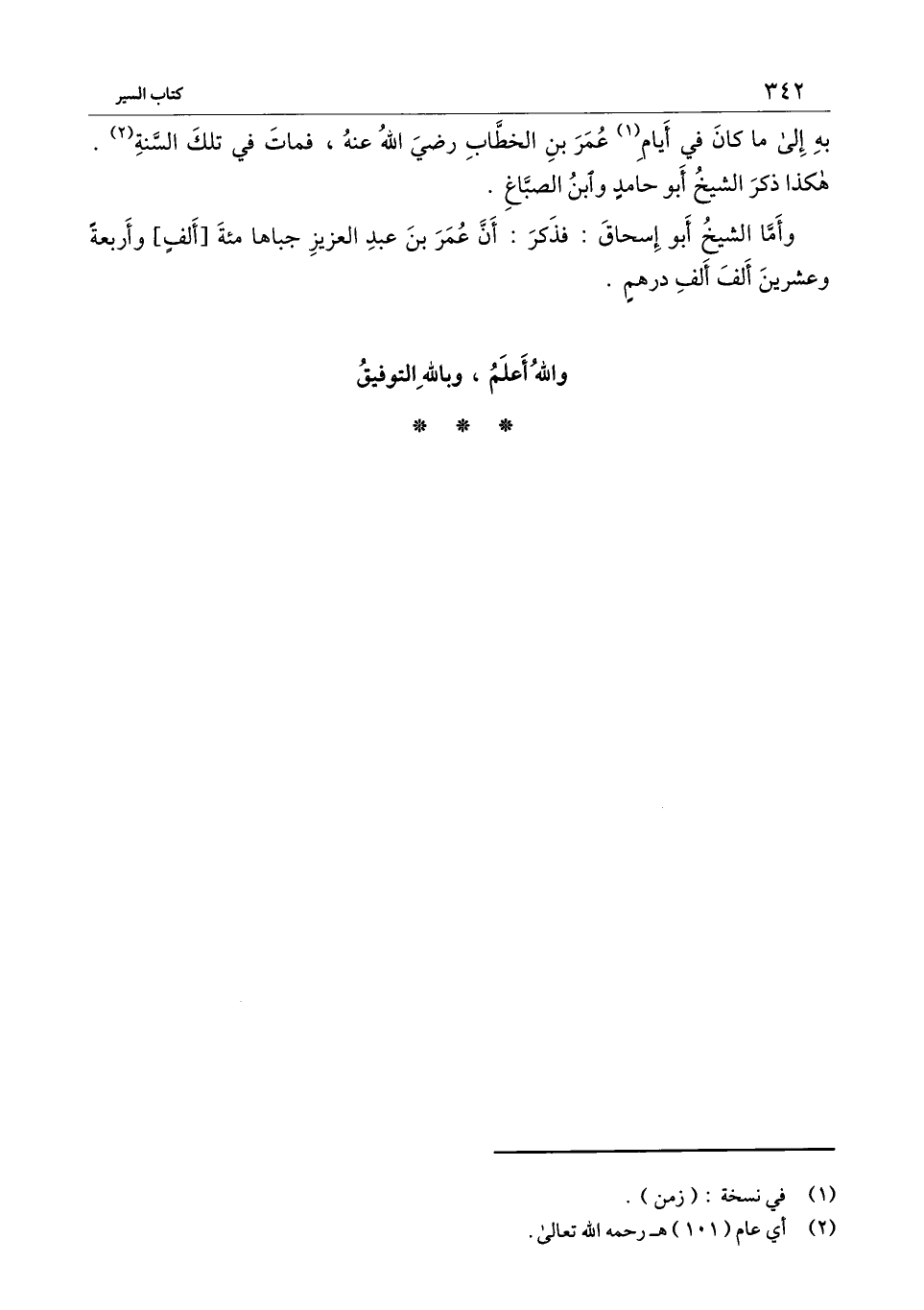به إلى ما كان في أيام عمر بن الخطاب - رَضِيَ اللَّهُ عَنْهُ -، فمات في تلك السنة. هكذا ذكر الشيخ أبُو حامد وابن الصبَّاغ.