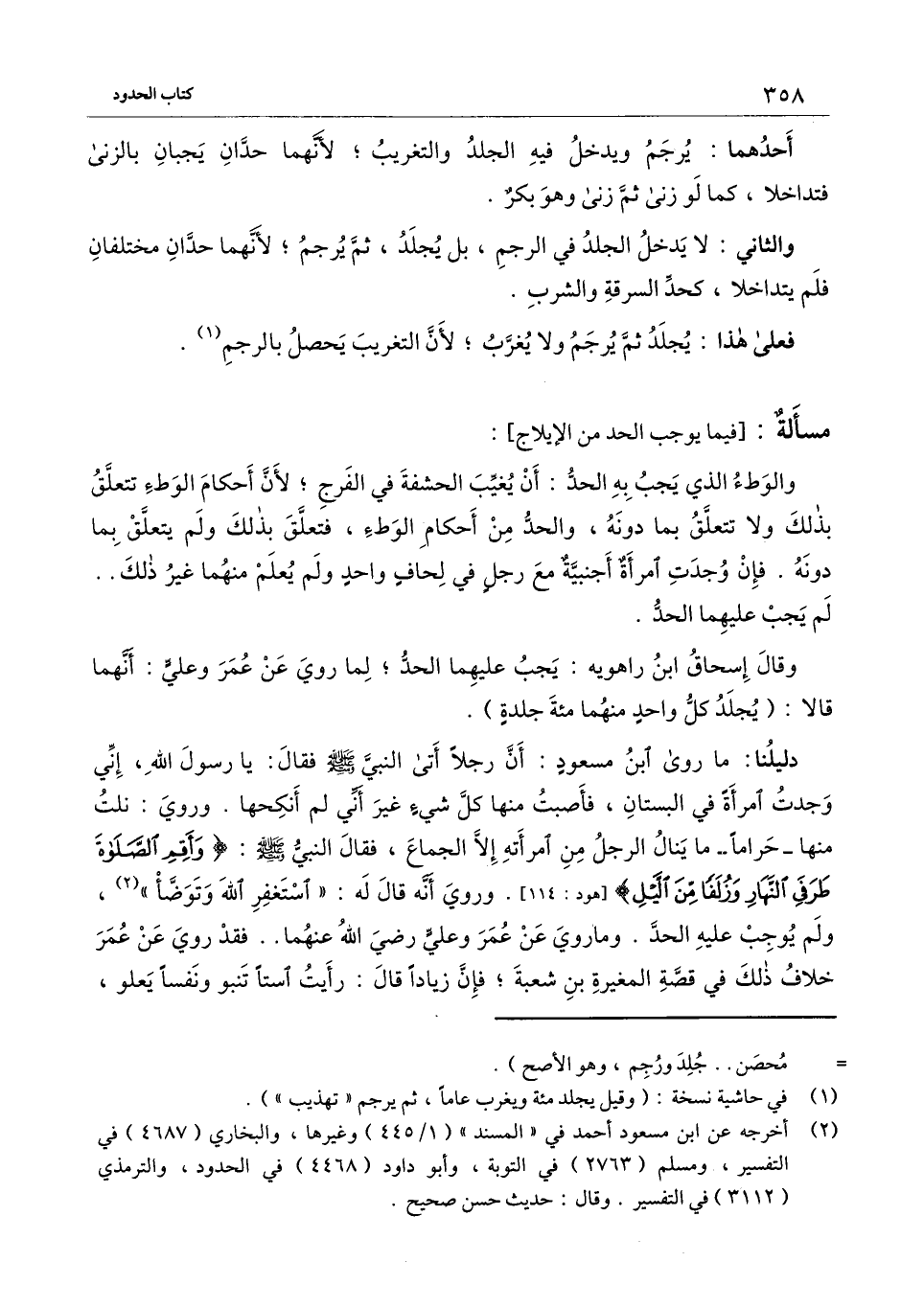 والثاني: لا يدخل الجلد في الرجم، بل يجلد، ثم يرجم؛ لأنهما حدان مختلفان فلم يتداخلا، كحد السرقة والشرب.