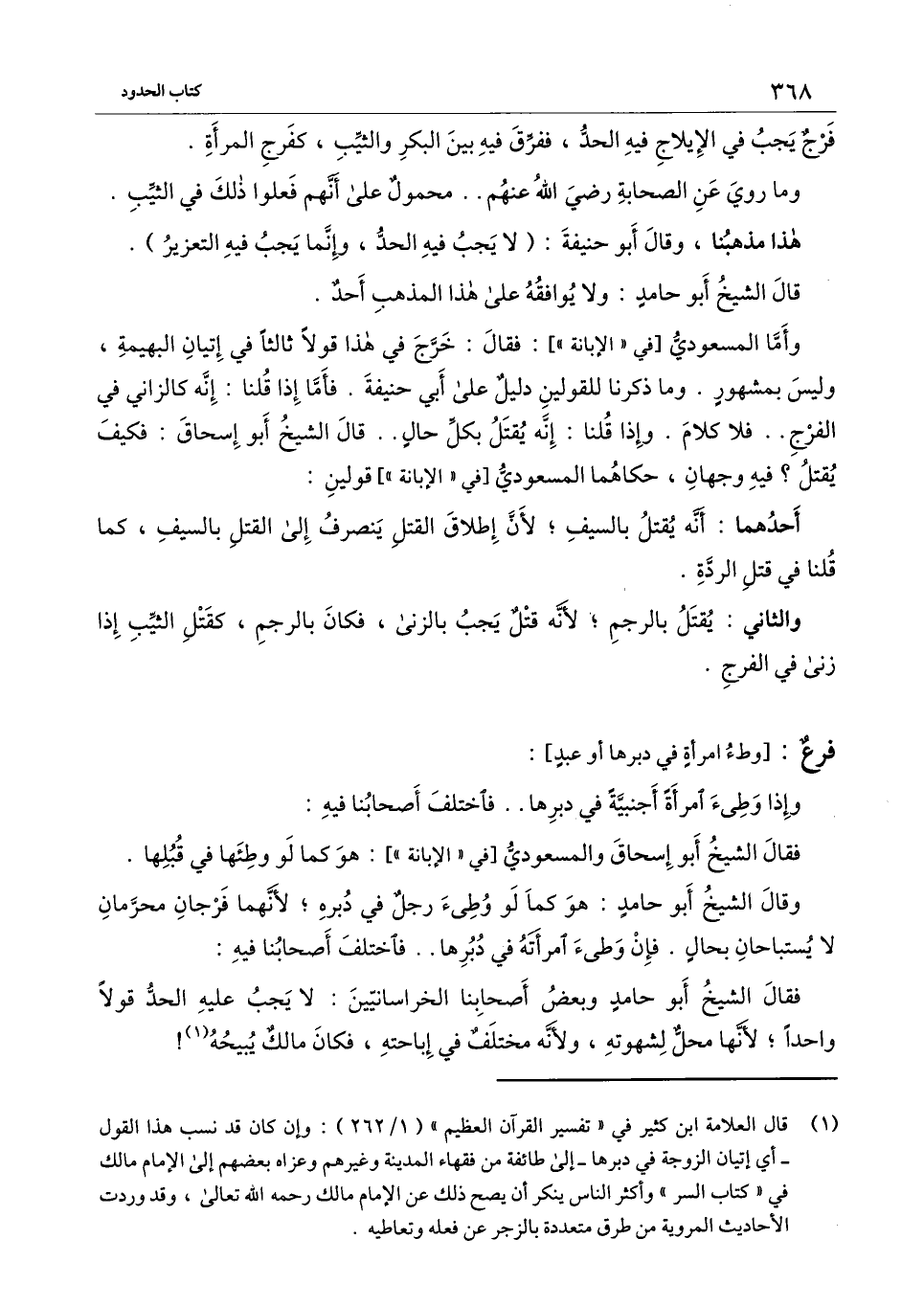 فقال الشيخُ أبُو حامد وبعض أصحابنا الخراسانيين: لا يجب عليه الحد قولا واحدا؛ لأنها محل لشهوته، ولأنه مختلف في إباحته، فكان مالك يبيحه!