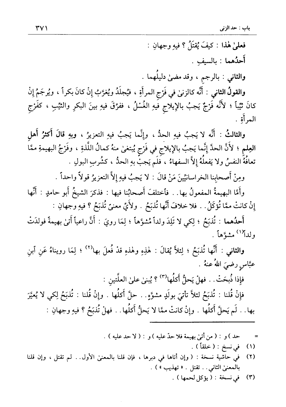 والثالث: أنه لا يجب فيه الحد، وإنما يجب فيه التَّعزِير، وبه قال أكثر أهل العلم؛ لأن الحد إنما يجب بالإيلاج في فرج يبتغي منه كمال اللذة، وفرج البهيمة مما تعافه النفس ولا يفعله إلا السفهاء، فلم يجب به الحد، كشرب البول.