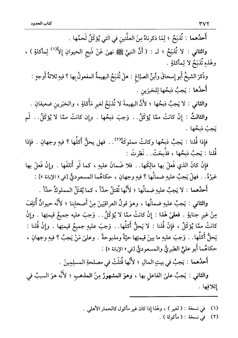 فإذا قلنا: يجب ذبحها وكانت مملوكة.. فهل يحل أكلها؟ فيه وجهان. فإذا قلنا: يجب ذبحها، فذبحت.. نظرت: