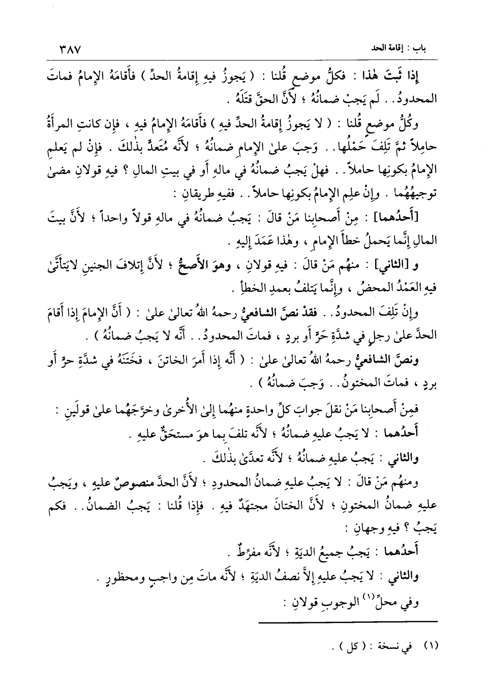 ومنهم من قال لا يجب عليه ضمان المحدود؛ لأن الحد منصوص عليه، ويجب عليه ضمان المختون؛ لأن الختان مجتهد فيه. فإذا قلنا: يجب الضمان.. فكم يجب؟ فيه وجهان: