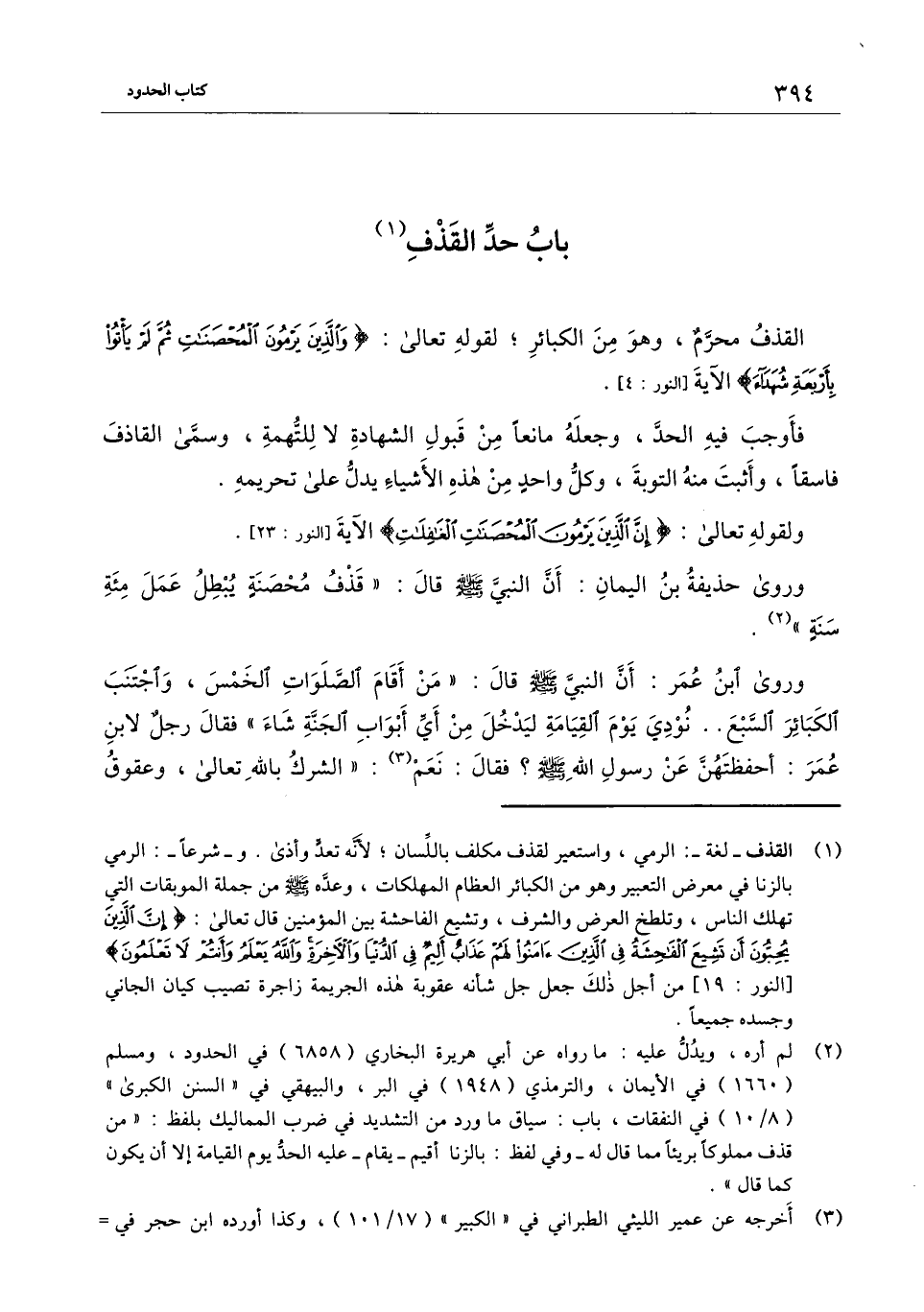 ورَوَى حذيفة بن اليمان: أن النَّبيَّ - صَلَّى اللَّهُ عَلَيْهِ وَسَلَّمَ - قال: «قذف محصنة يبطل عمل مائة سنة» .