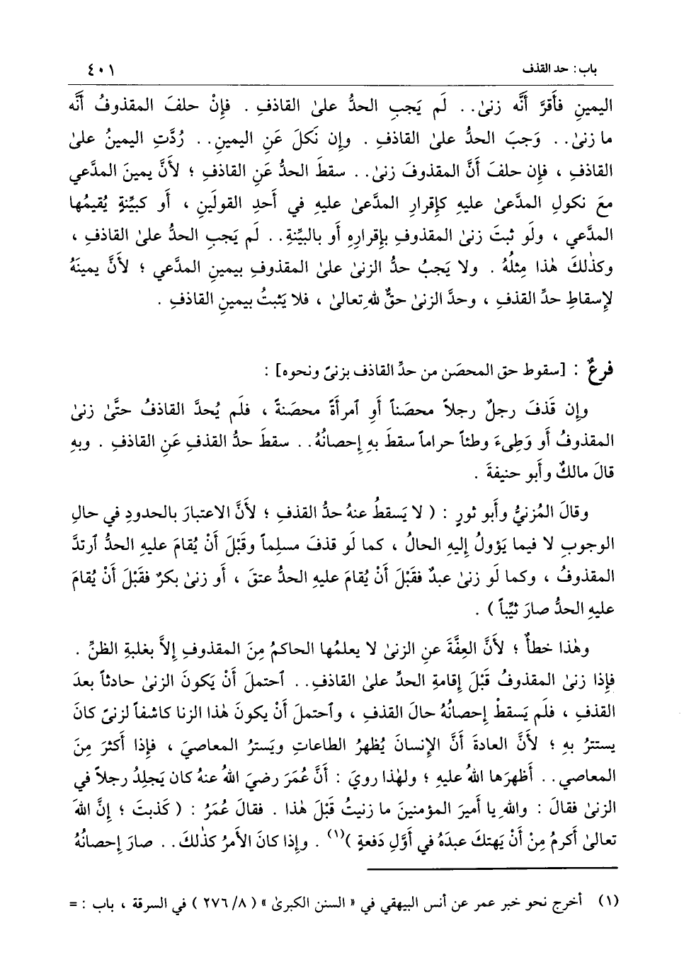 [فرع: سقوط حق المحصن من حد القاذف بزنا ونحوه]