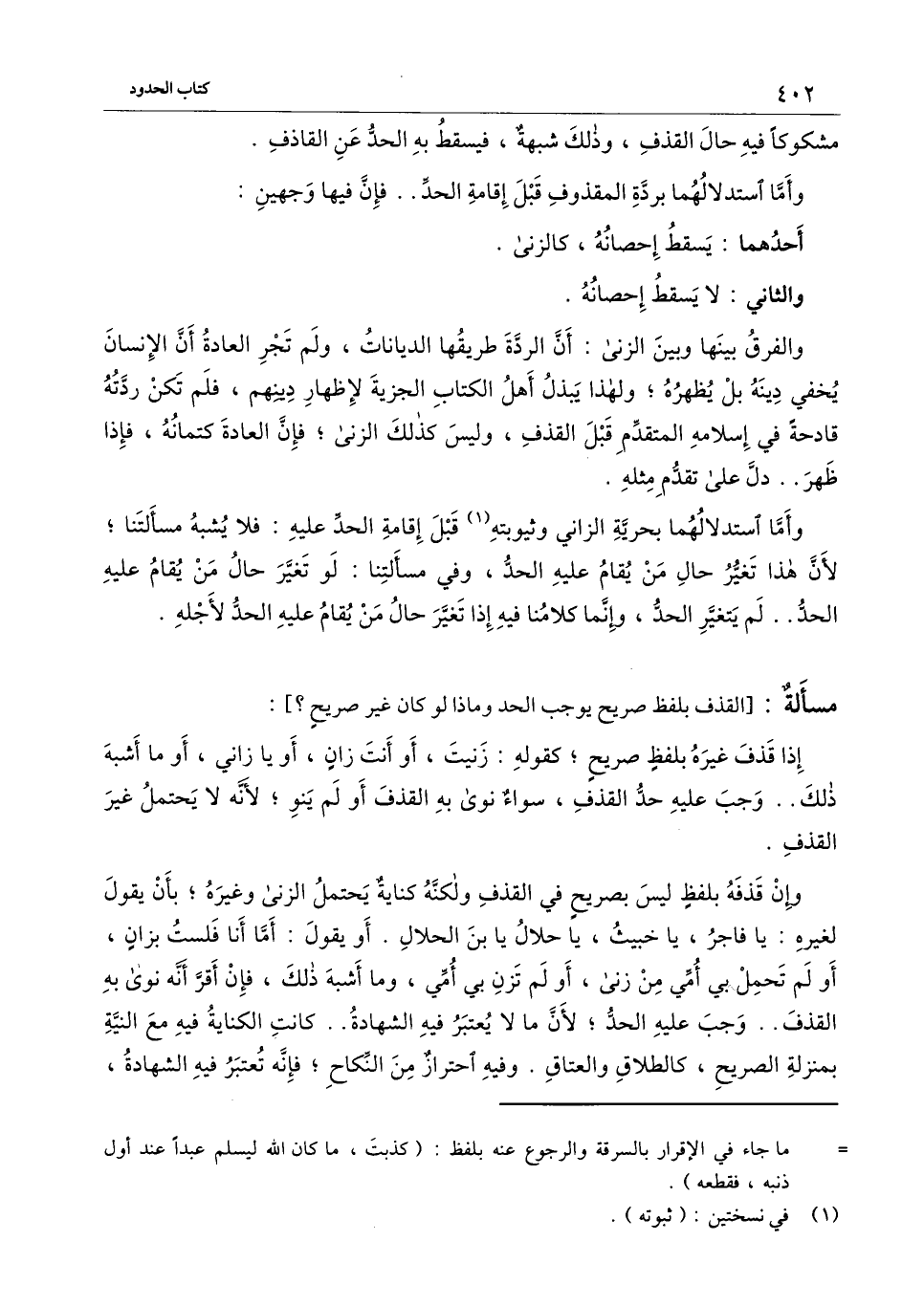 وأمَّا استدلالهما بردة المقذوف قبل إقامة الحد.. فإن فيها وجهين: