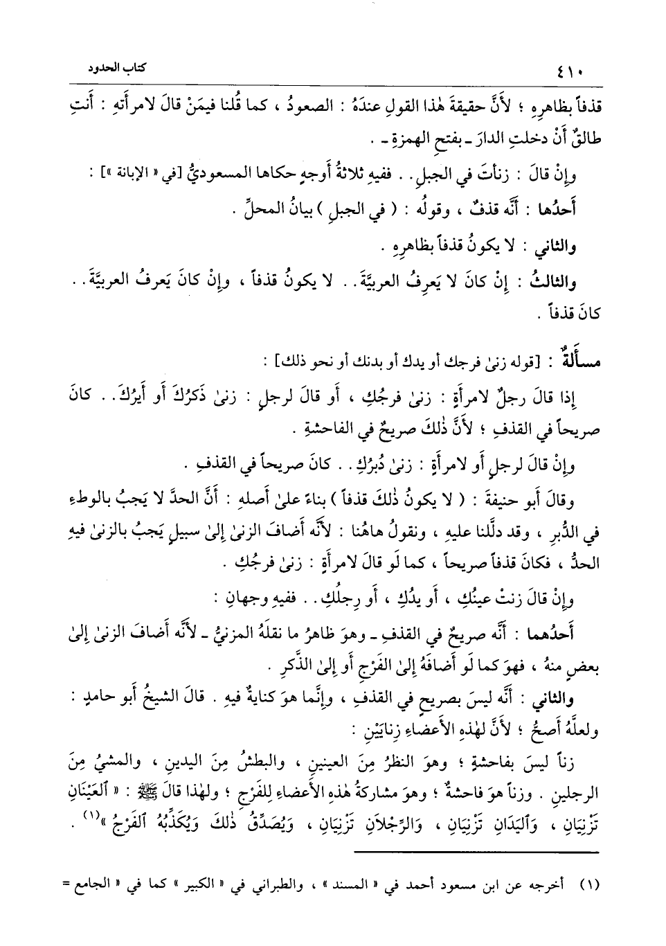 إذا قال رجل لامرأة: زنَى فرجك، أو قال لرجل: زنَى ذكرك أو أيرك.. كان صريحاً في القذف، لأن ذلك صريح في الفاحشة.