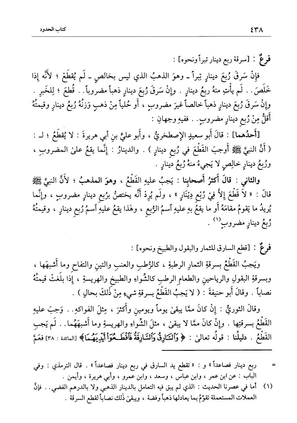 [فرع: سرقة ربع دينار تبرا ونحوه]