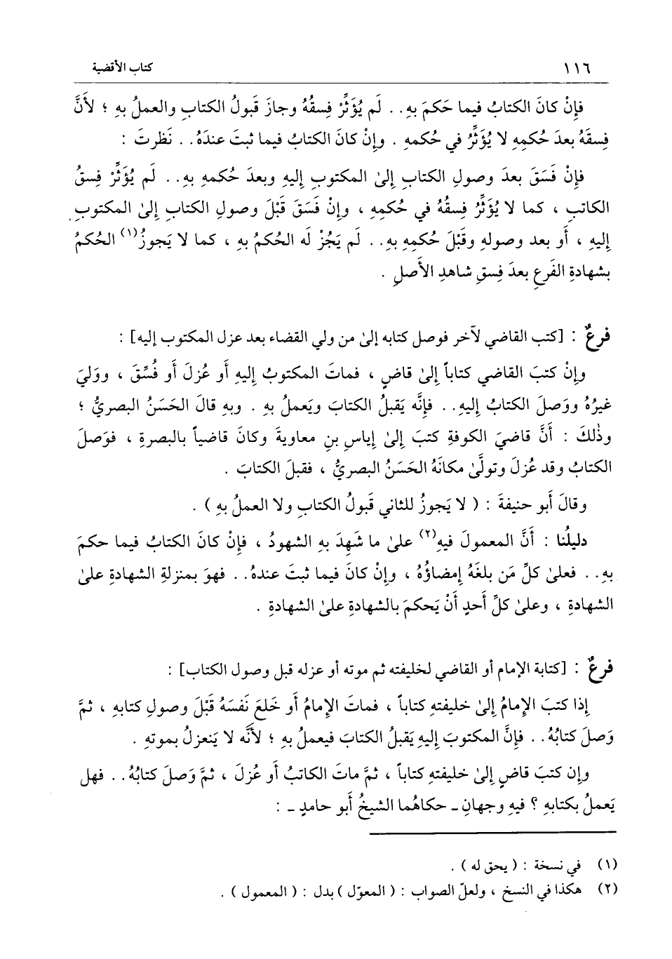فرع: [كتب القاضي لآخر فوصل كتابه إلى من ولي القضاء بعد عزل المكتوب إليه] : وإن كتب القاضي كتابا إلى قاض، فمات المكتوب إليه أو عزل أو فسق، وولي غيره ووصل الكتاب إليه.. فإنه يقبل الكتاب ويعمل به. وبه قال الحسن البصري؛ وذلك: أن قاضي الكوفة كتب إلى إياس بن معاوية وكان قاضيا بالبصرة، فوصل الكتاب وقد عزل وتولى مكانه الحسن البصري، فقبل الكتاب.