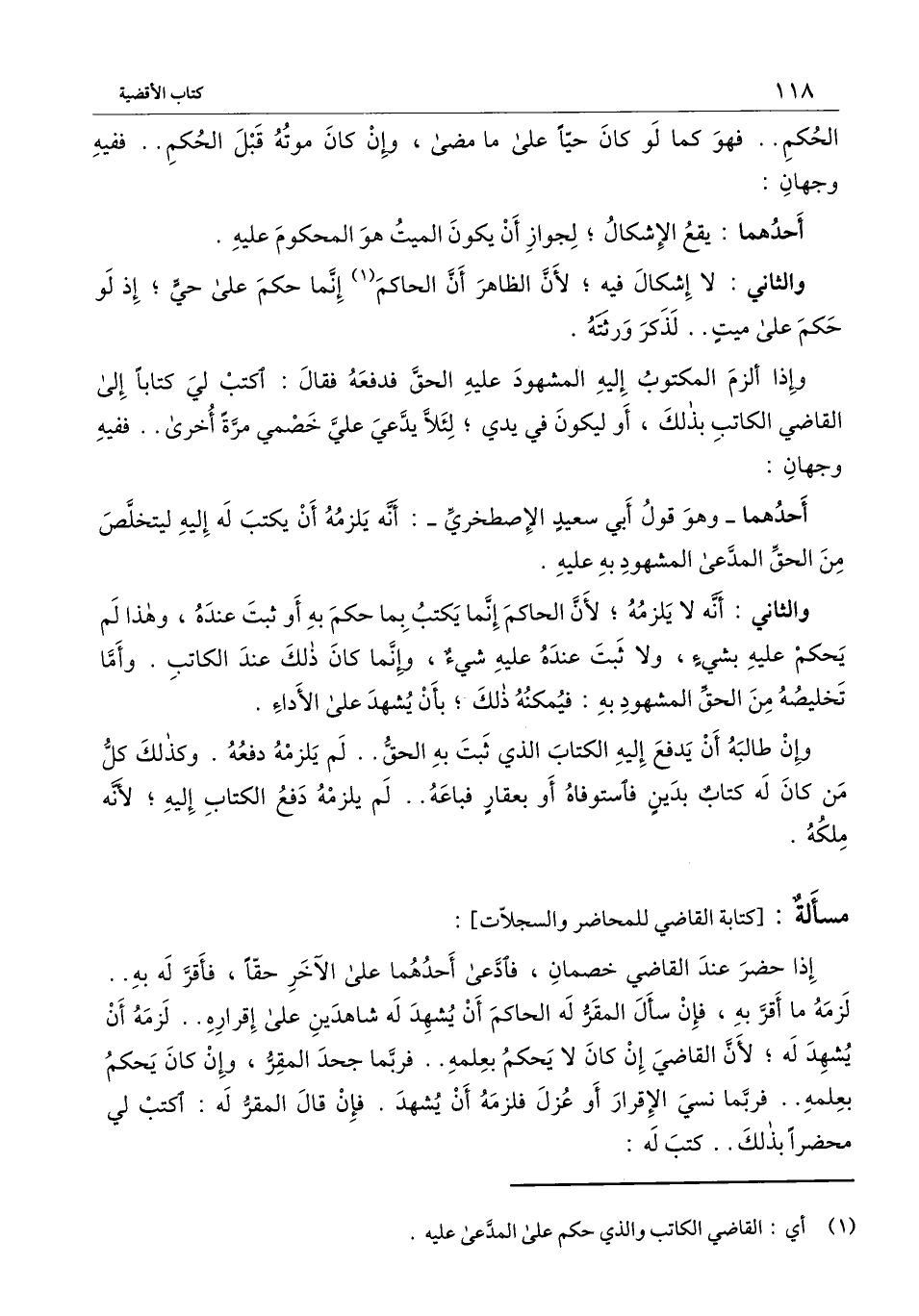 [مسألة كتابة القاضي للمحاضر والسجلات]