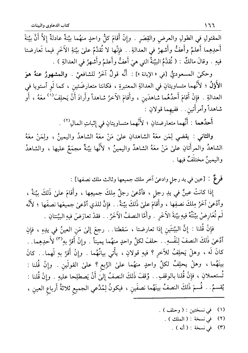 المقتول في الطول والعرض والقصر.. وإن أقام كل واحد منهما بينة عادلة إلا أن بينة أحدهما أعلم وأعف وأشهر في العدالة.. فإنها لا تقدم على بينة الآخر فيما تعارضتا فيه. وقال مالك: (تقدم البينة التي هي أعف وأعلم وأشهر في العدالة) .