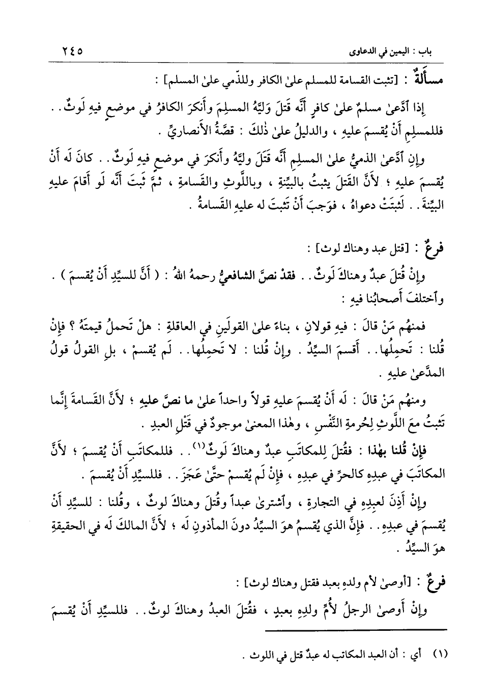 [فرع قتل عبد وهناك لوث]
