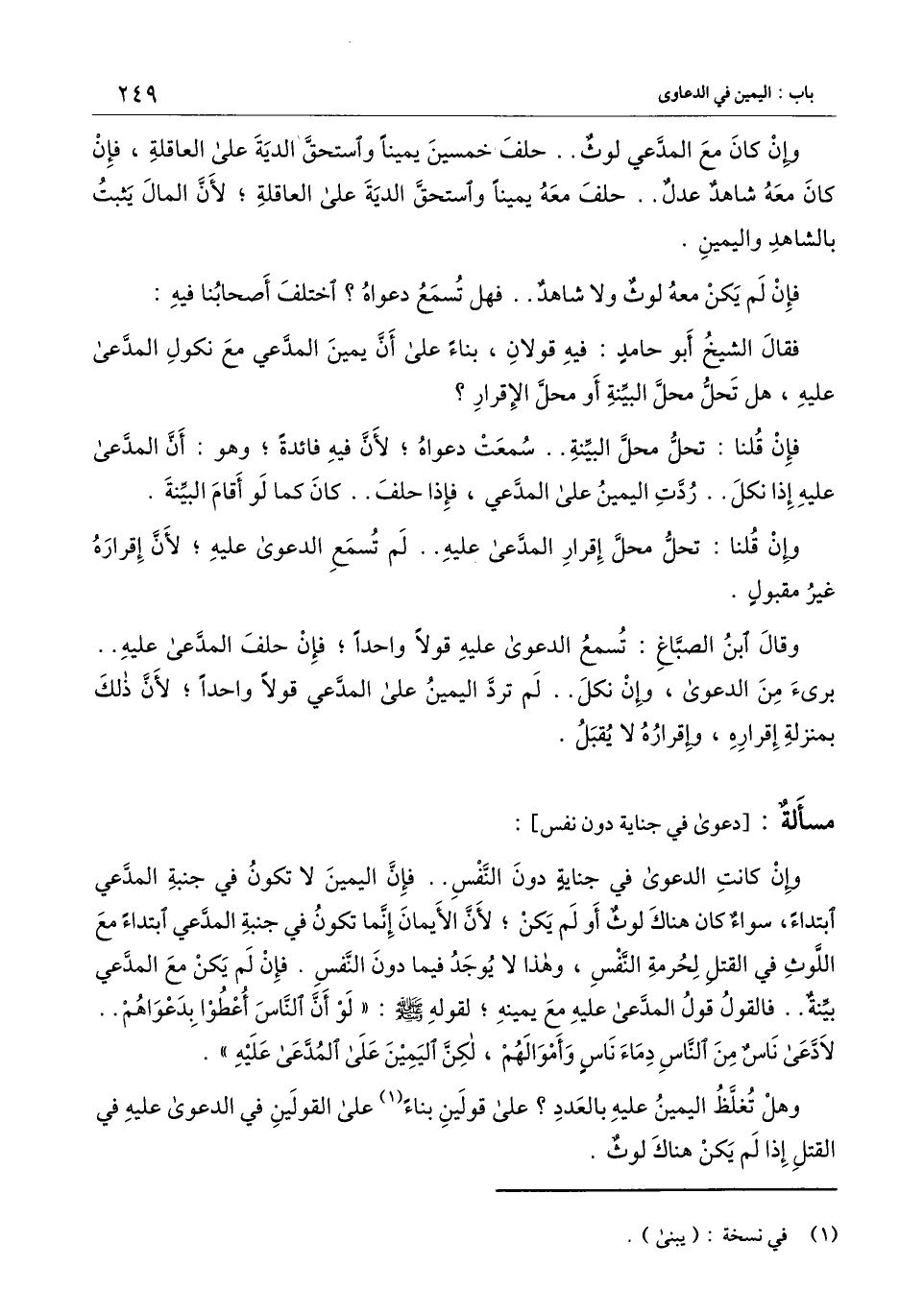 فإن لم يكن معه لوث ولا شاهد.. فهل تسمع دعواه؟ اختلف أصحابنا فيه: