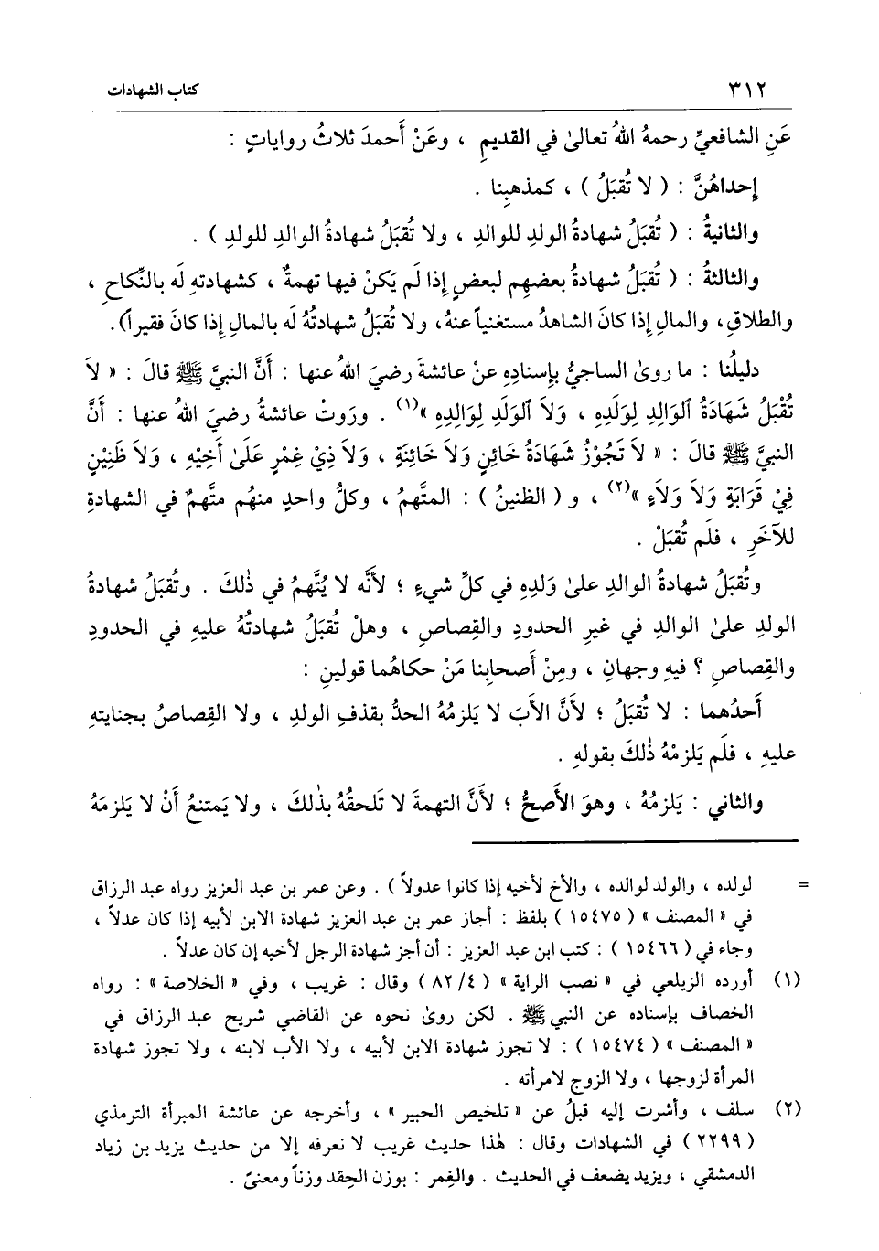 والثانية: (تقبل شهادة الولد للوالد، ولا تقبل شهادة الوالد للولد) .