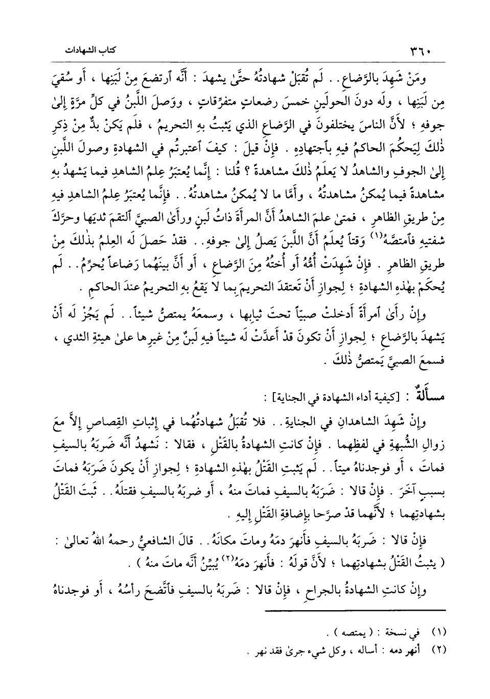 [مسألة كيفية أداء الشهادة في الجناية]